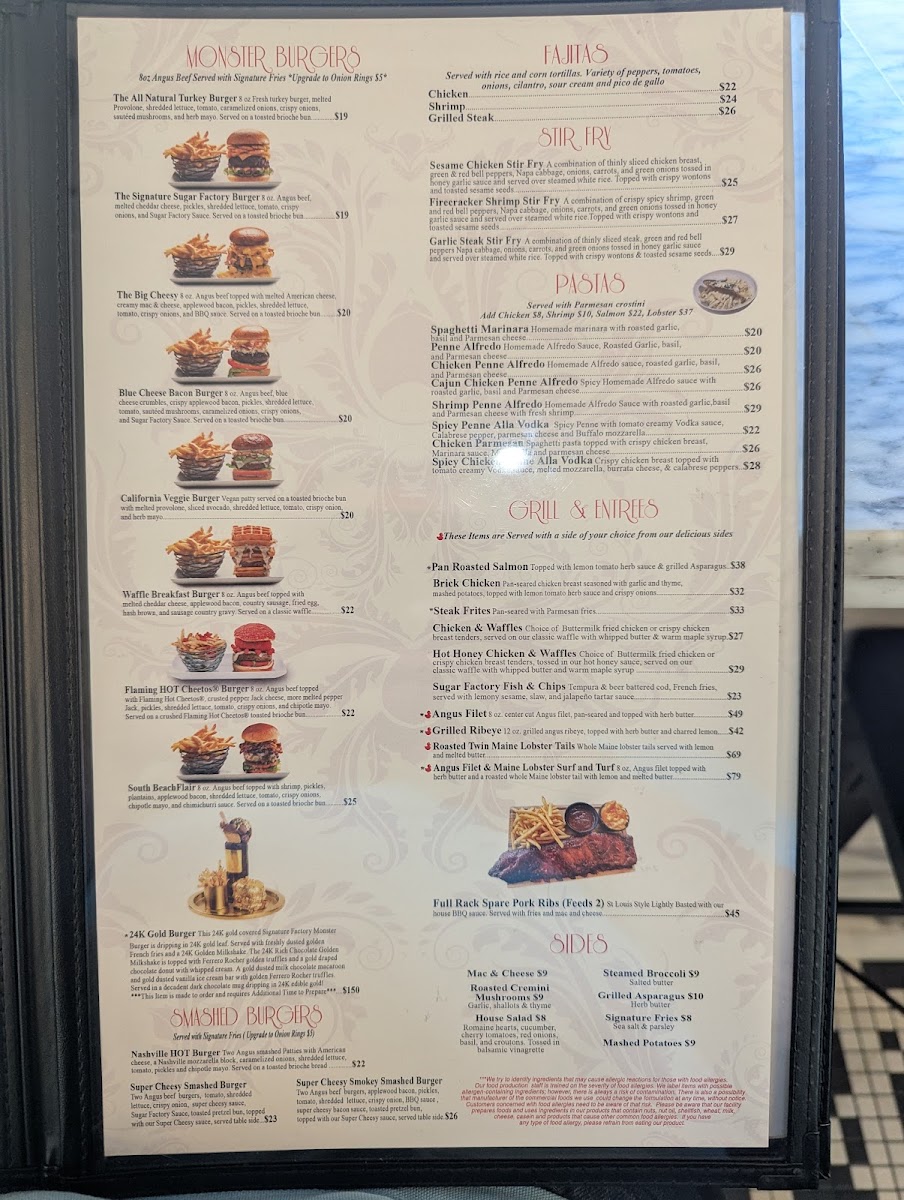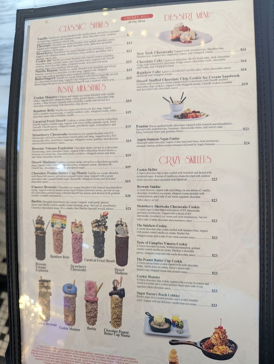 Sugar Factory - Cherry Hill Menu (2025 Update)